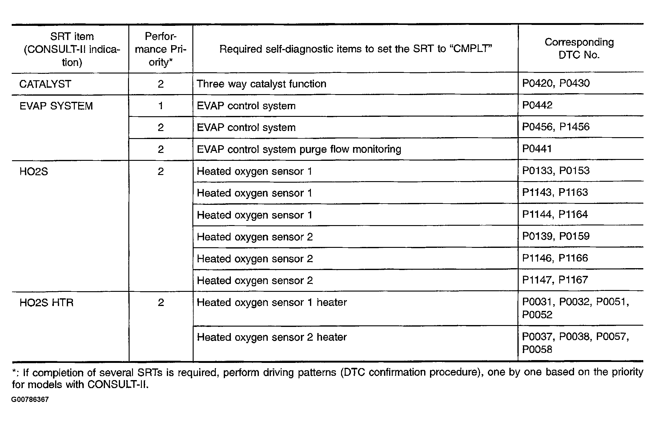 - If the 1st trip DTC is erased, all the SRT will indicate INCMP.NOTE: SRT can be set as CMPLT together with the DTC(s). Therefore, DTC check must always be carried out prior to the state emission inspection even though the SRT indicates CMPLT.