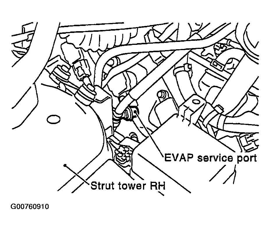 - Attach the EVAP service port adapter securely to the EVAP service port. For service port location, see Figure.