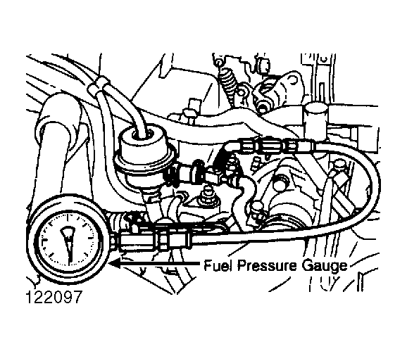 . Fuel pressure gauge should read about 42 psi (3.0 kg/cm2