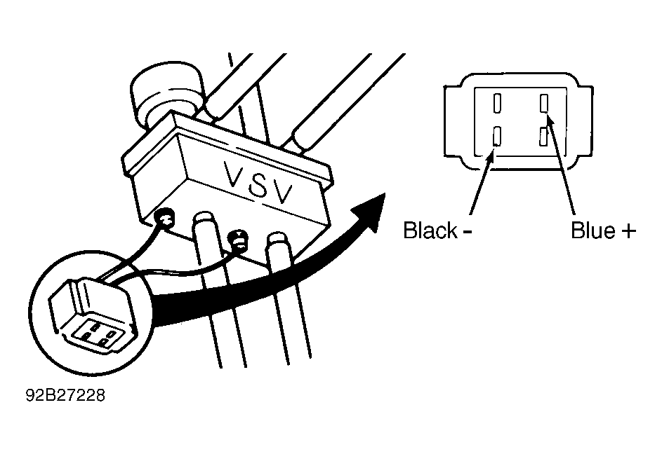 ). Apply battery voltage to VSV connector Blue wire terminal, and ground Black wire terminal (with vacuum). See Fig 2