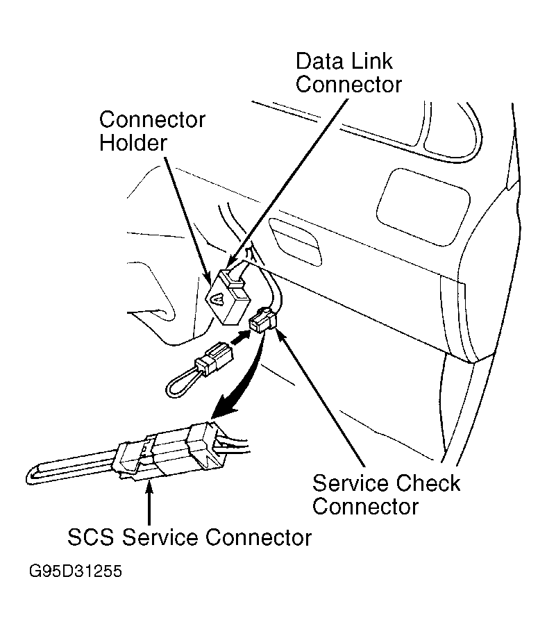 into service check connector.CAUTION: DO NOT attempt any connection to 3-pin Data Link Connector (DLC) located near service check connector.