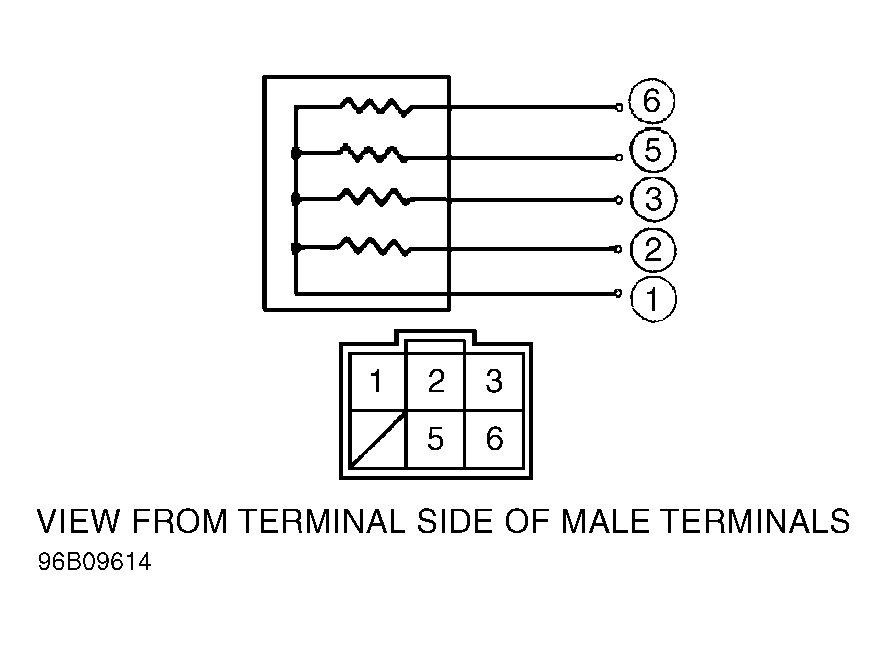 Unplug injector resistor harness connector. Injector resistor is located at upper left firewall. Measure resistance between injector resistor terminal No. 1 and terminals No. 2, 3, 5 and 6. See Fig 1 . Resistance should be 5-7 ohms for each measurement. If any measurement is not as specified, replace injector resistor.