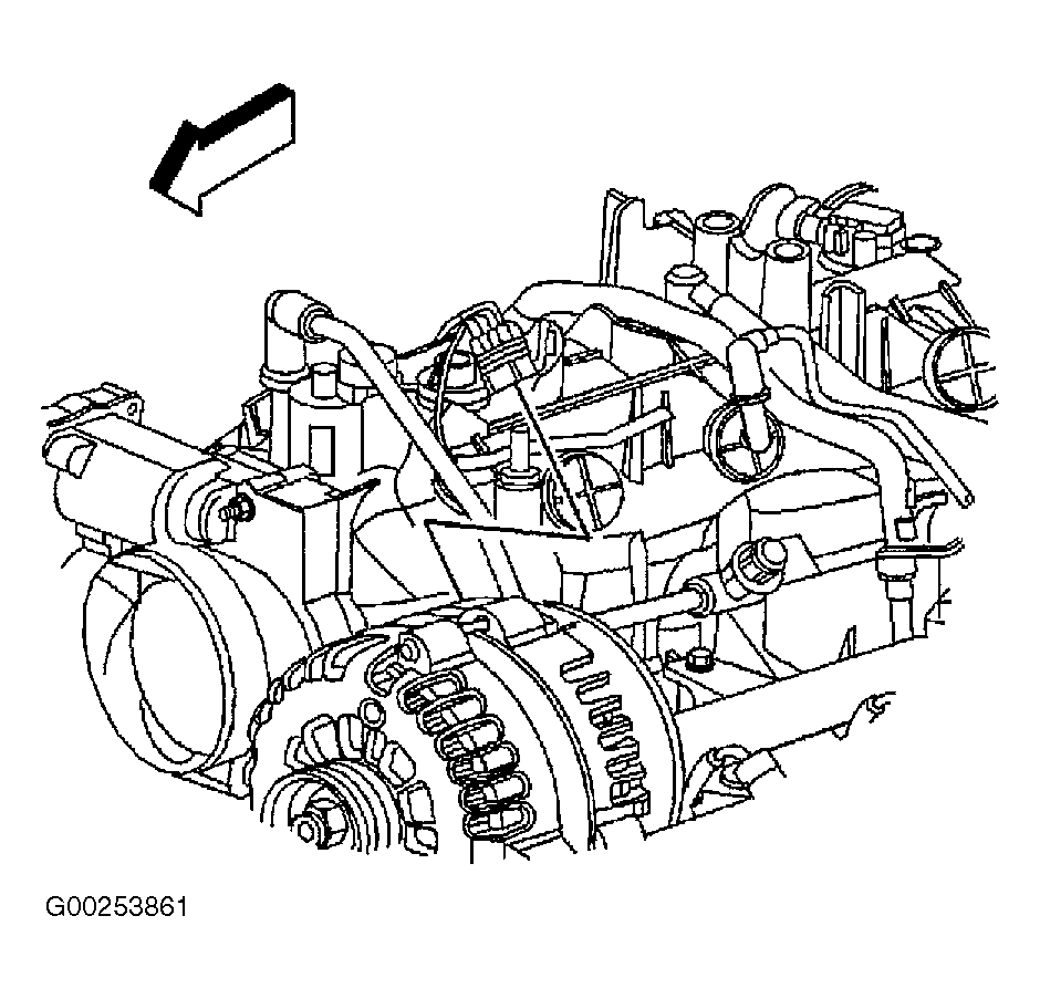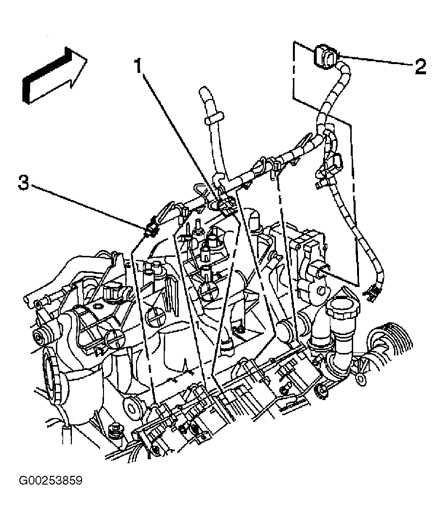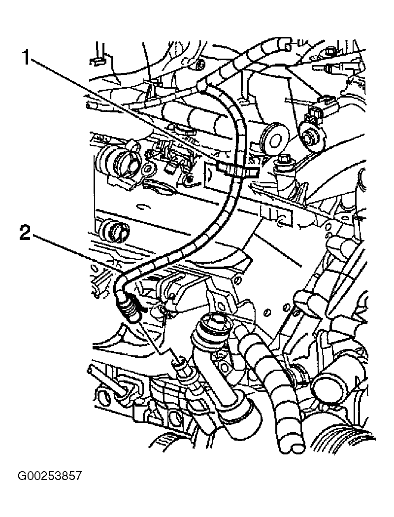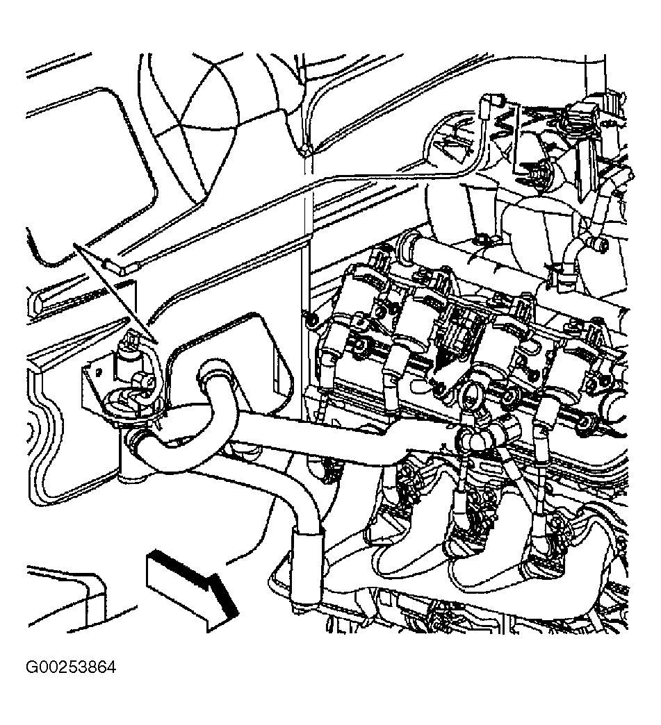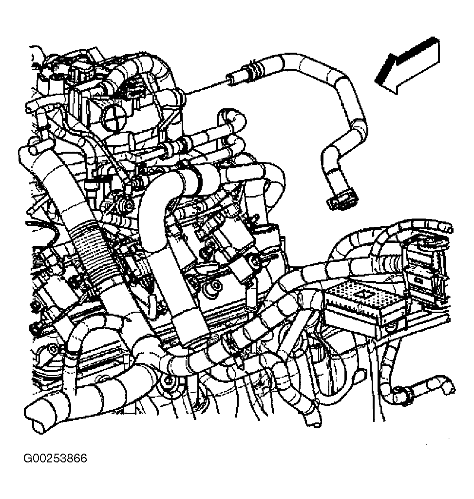 - Remove the heater water shutoff valve actuator inlet hose from the intake manifold. See Fig 8