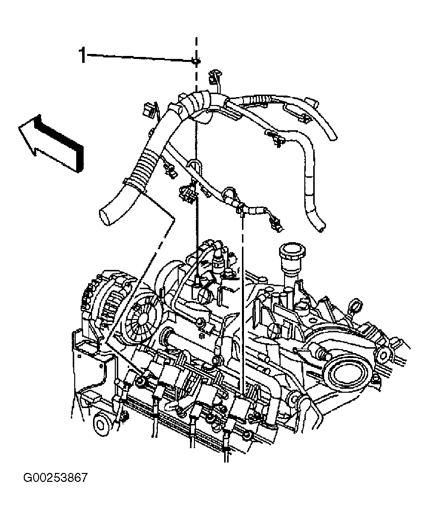 - Remove the upper engine wire harness retainer nut (1). See Fig 11