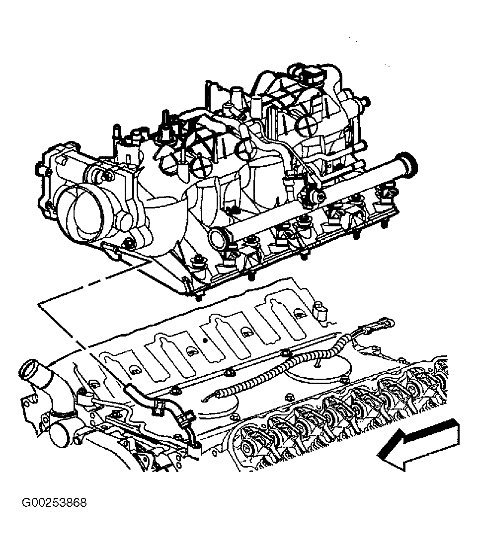 - To install, use new intake manifold gasket when installing intake manifold. Apply a 0.20 in (5 mm) bead of threadlock (GM P/N 12345382), or equivalent, to threads of intake manifold bolts. Install intake manifold bolts and tighten in two passes to specification. See Fig 14