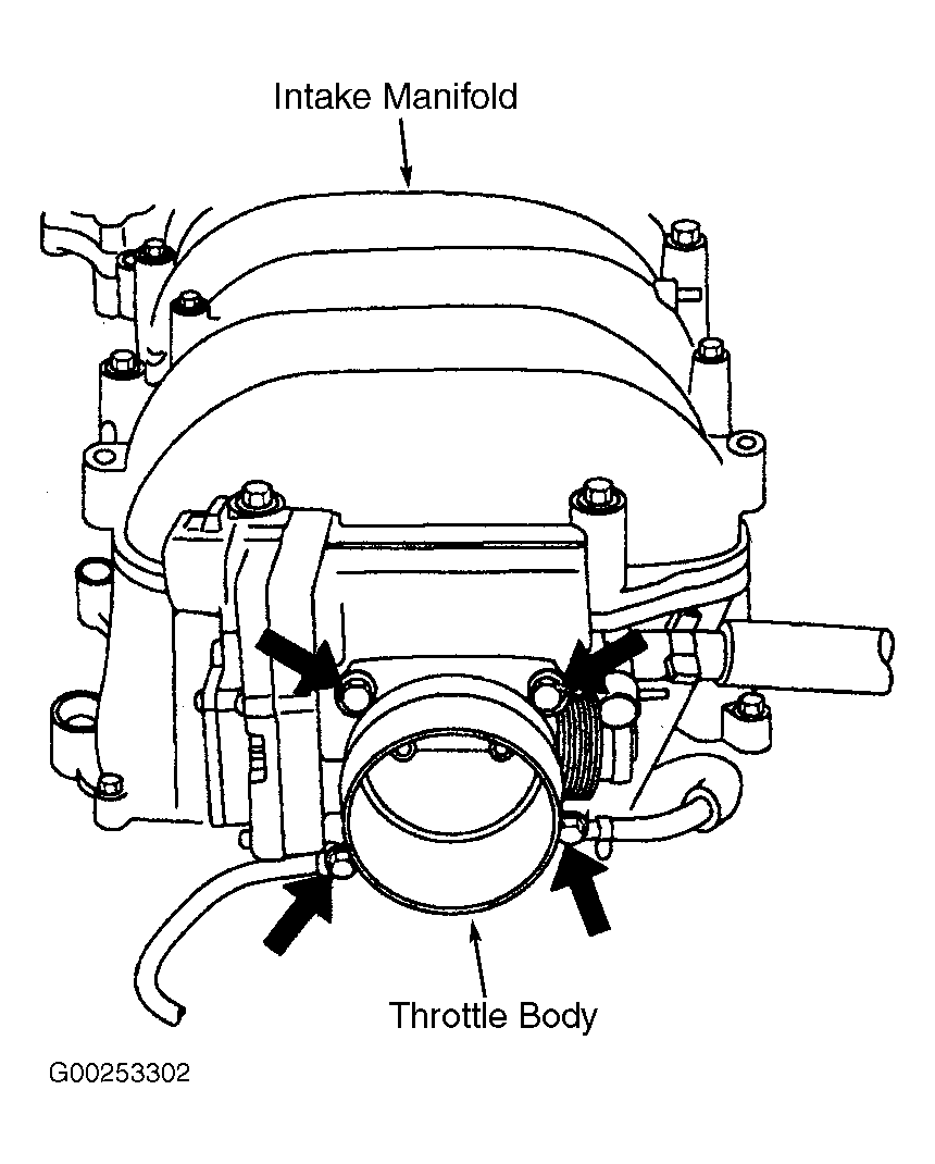 - Remove 4 bolts securing throttle body to intake manifold. See Figure .