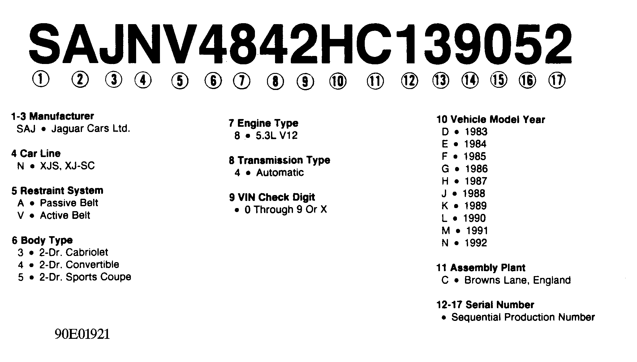 Home >> Jaguar >> 1987 >> XJ-SC >> Repair and Diagnosis >> Engine Performance >> Application >> Engine/VIN Id >> Model Identification >> Notes