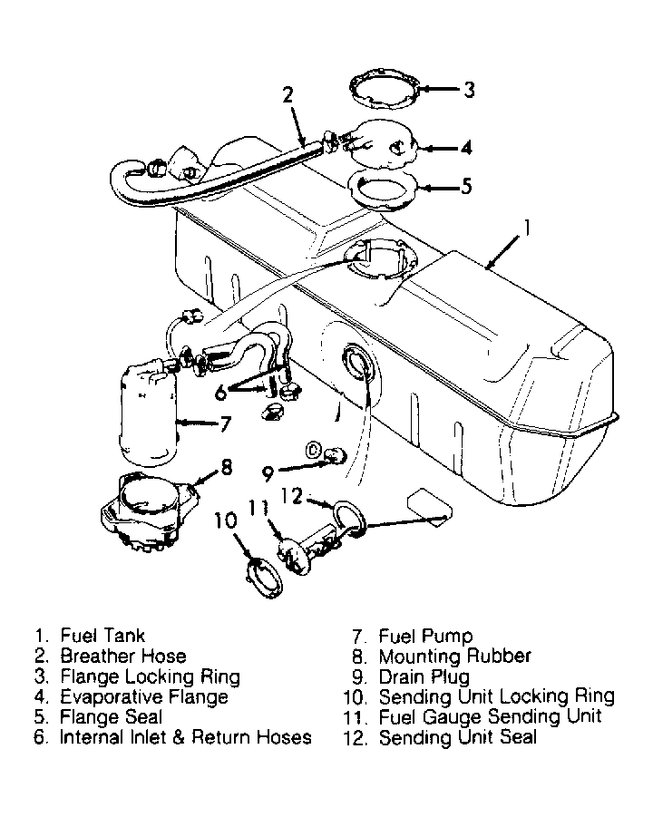 - Reposition flange to access fuel pump wiring harness connector, and disconnect connector. Disconnect fuel hoses from fuel pump. Remove tie wrap from pump mounting rubber.