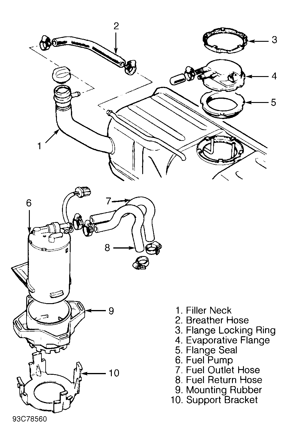 - Disconnect fuel pump wiring harness connector. Using Fuel Tank Hose Clip Driver (JD175), disconnect fuel hoses from fuel pump. Remove fuel pump and pump mounting rubber from support bracket.
