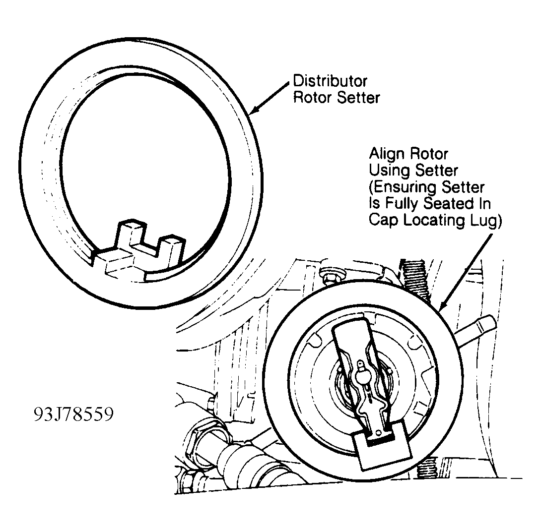. Install distributor. Tighten hold-down bolt. Install distributor cap and high tension (spark plug) leads.