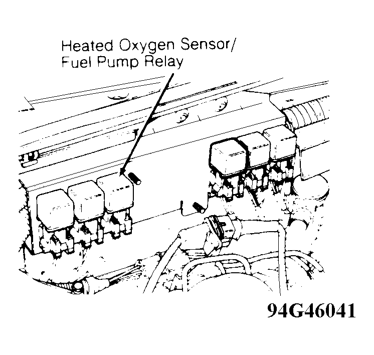 - On XJ6, open hood. Remove heated oxygen sensor/fuel pump relay from relay block. See Figure . On all models, start engine and let idle until engine stalls. Turn ignition off. Install heated oxygen sensor/fuel pump relay.