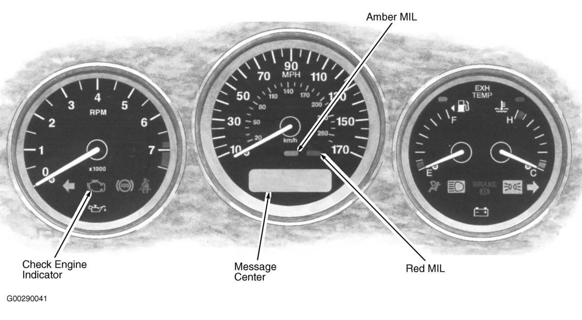 1. Verify customer concern. Confirm which, if any, warning lights and/or messages were displayed on the instrument cluster. See Figure.