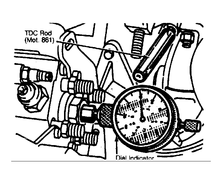 - Rotate crankshaft clockwise 2 revolutions, remove screw plug from TDC access hole in cylinder block, and install TDC Rod. See Figure. Move timing control lever to detent position. Ensure clearance between timing control lever and lever stop is .020 in. (.50 mm).