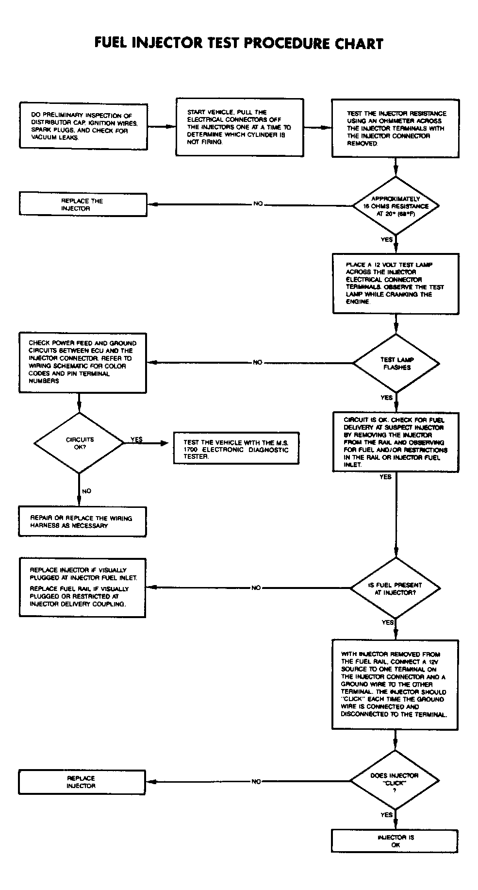 See FUEL INJECTOR TEST PROCEDURE chart in this article. See