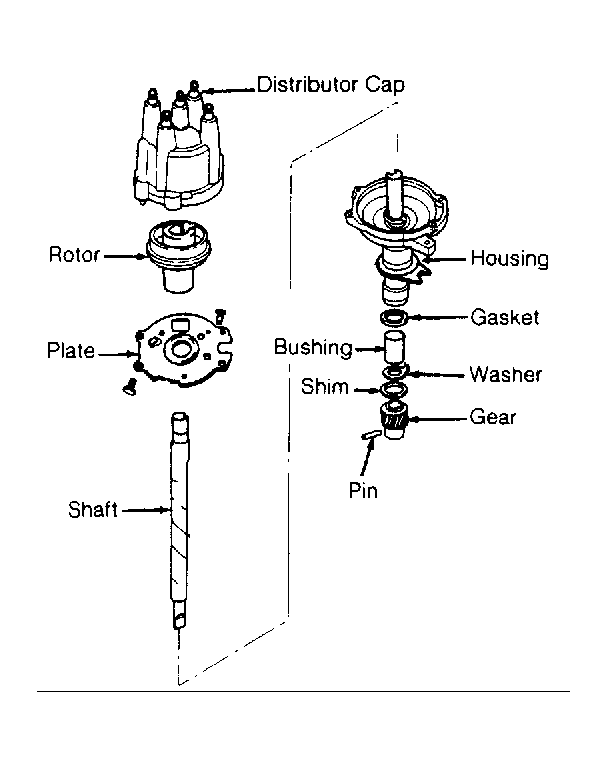 - Scribe a mark on distributor housing near clamp and continue scribe mark onto engine block in line with distributor housing mark. Note position of rotor and distributor housing in relation to surrounding engine components.