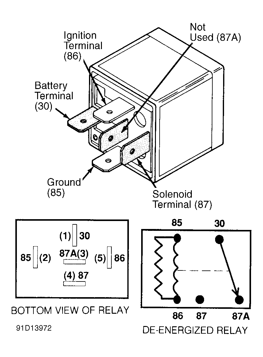 - Remove fuel pump relay (located in power distribution center). Using a jumper wire, connect terminals No. 30 and 87. See Figure . Volume of fuel should be one pint. (.47L) in 30 seconds. If fuel volume is not as specified, check for a plugged fuel filter or fuel pump inlet sock.