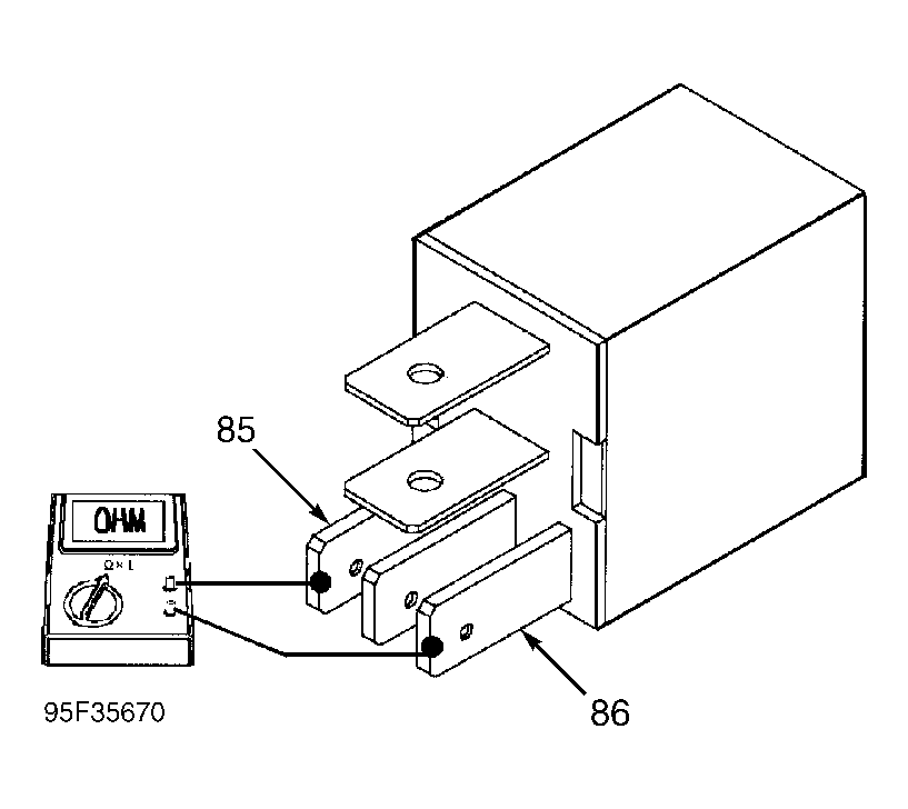 - Using an external ohmmeter, check resistance across FP relay terminals. See Figure. If resistance is 100 ohms or more, replace FP relay and perform TEST VER-2A. If resistance is less than 100 ohms, go to next step.