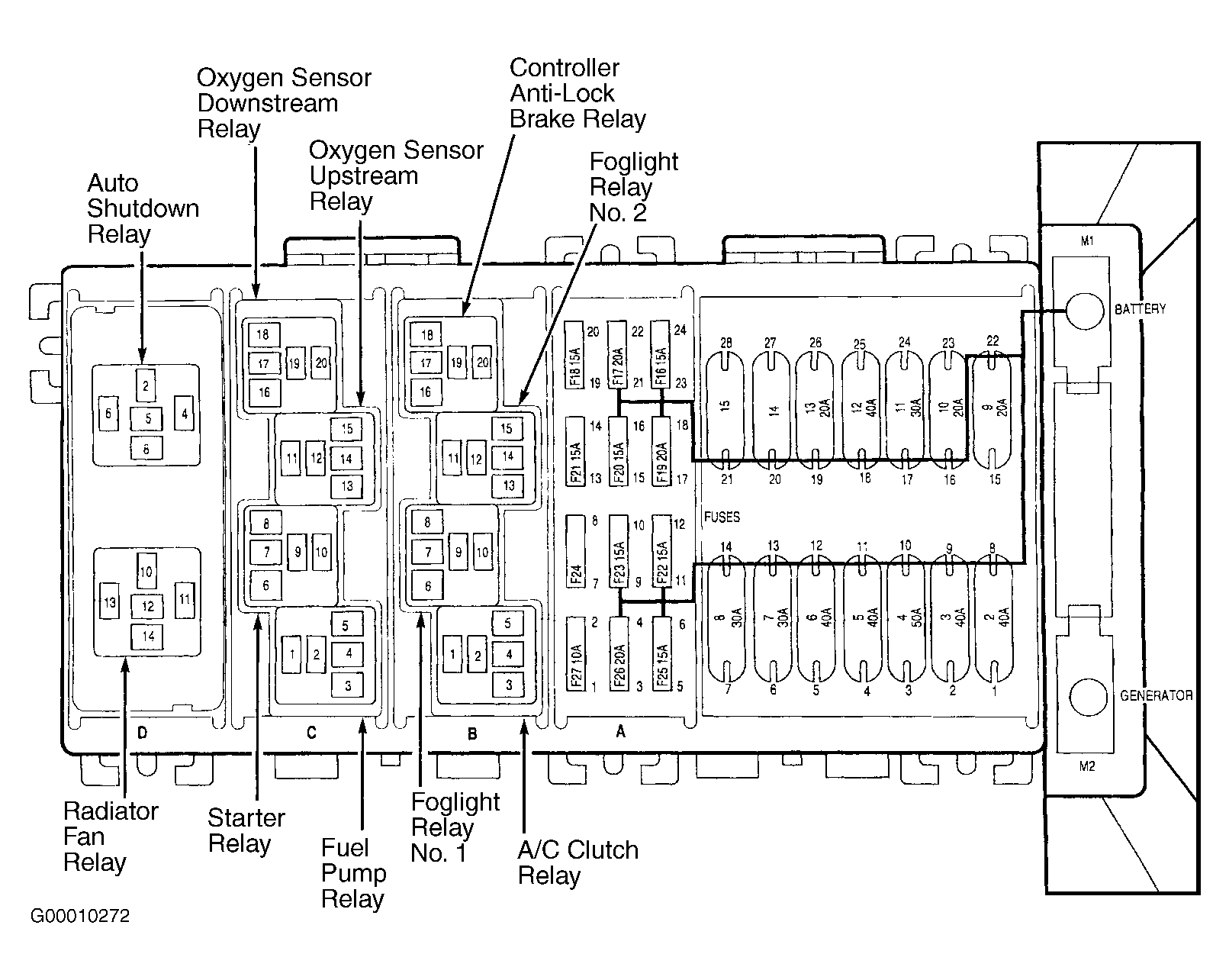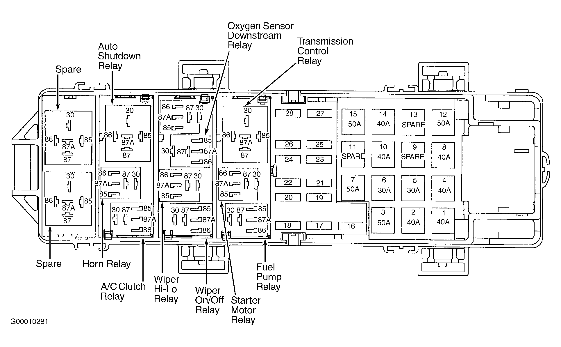 1. Remove fuel pump relay from Power Distribution Center (PDC). PDC is located in right side of engine compartment, next to battery. See Figure , Figure or Figure . Start and run engine until it stalls. Attempt to start engine. Continue restarting engine until it will no longer run. Turn ignition off.
