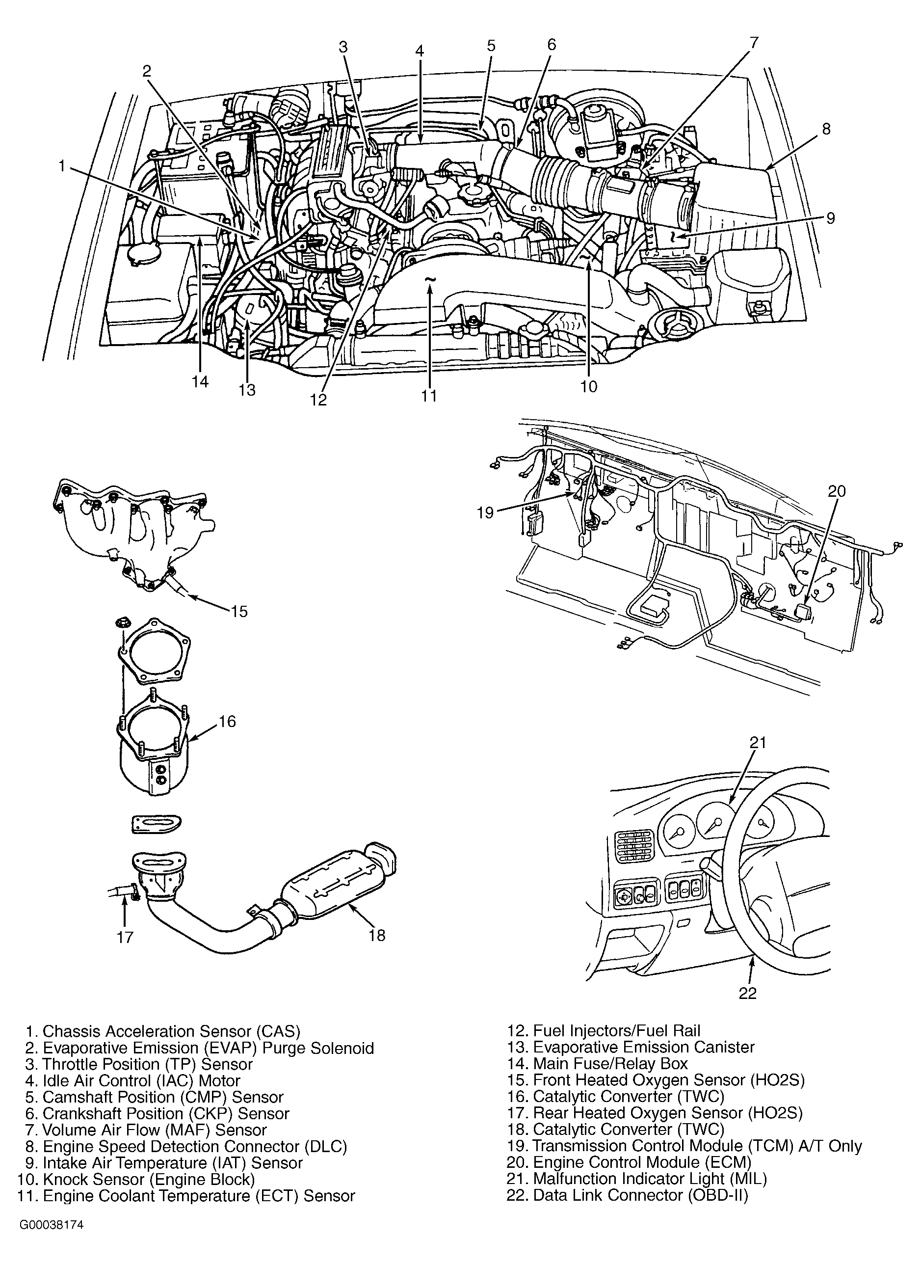 Heated Oxygen Sensors (Front) Mounted Above Catalytic Converters