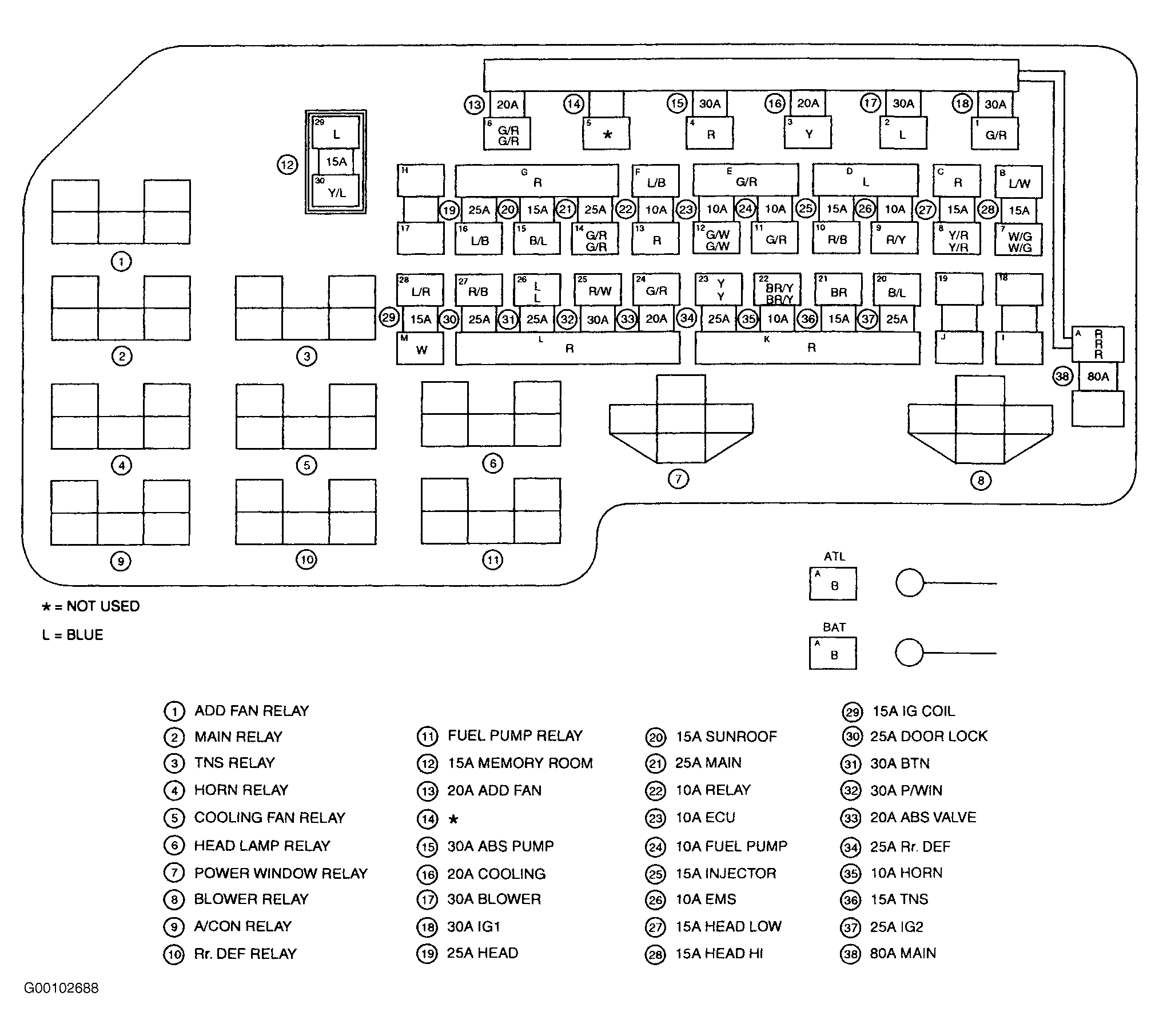 - Turn ignition off. Locate fuses and Main relay in engine compartment fuse/relay box. See Figure