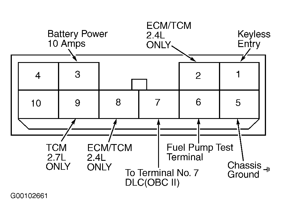 After performing any operation that requires releasing fuel pressure, fuel system should be primed to prevent long cranking times. To prime fuel system, jumper Data Link Connector (DLC) terminal FUEL PUMP and (B+). On Optima & Magentis (Canadian), DLC is located on left side under dash. On all other models, DLC is located on left side of engine compartment. See Fig 1, Fig 2 or Fig 3 . Turn ignition on for no longer than 10 seconds to run pump and pressurize fuel system. Turn ignition off and remove jumper wire. Check for leaks. Repair any leaks as necessary.