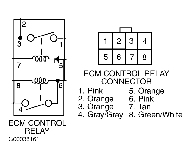 1. Remove ECM control relay located in vehicle right side of dash. See Fig 1. Check for continuity between relay terminals No. 1 and No. 3. See Fig 2. If continuity does not exist, go to next step. If continuity exists, replace relay.
