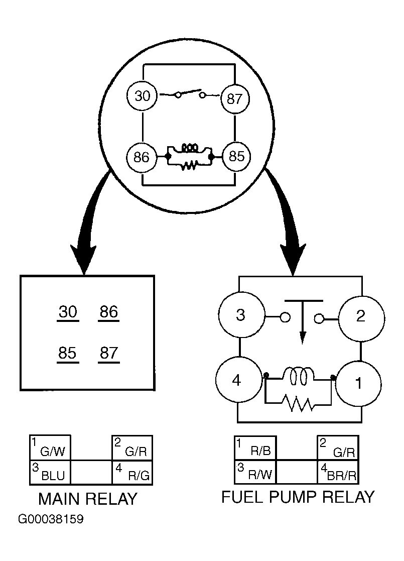 - Check continuity between relay terminals No. 2 and No. 3. Continuity should exist. If continuity does not exist, replace relay.