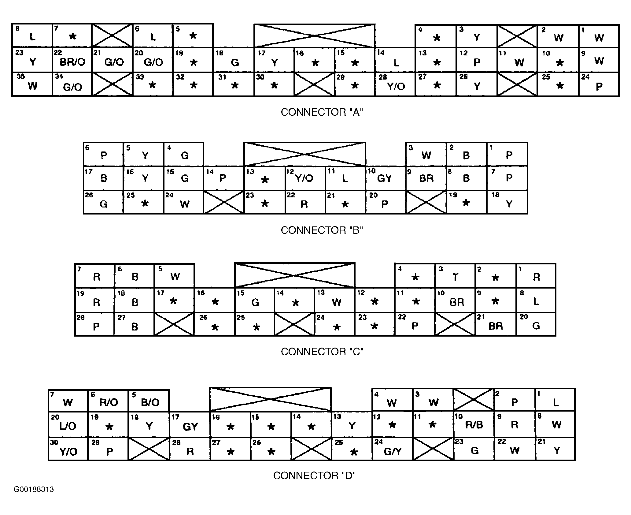 (1) For circuit identification, see WIRING DIAGRAMS article. For connector views, see Fig 1-Fig 7 .