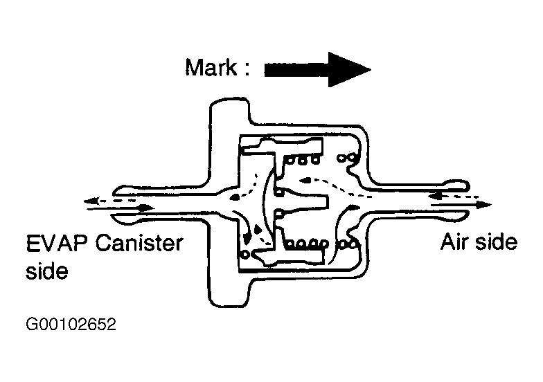 - Two-Way valve consist of a pressure valve and a vacuum valve. Pressure valve side is designed to open when fuel tank internal pressure has increased over normal pressure, and vacuum valve side opens when vacuum has been produced in fuel tank. For Two-Way valve identification, see Fig 1. For valve test, go to next step.