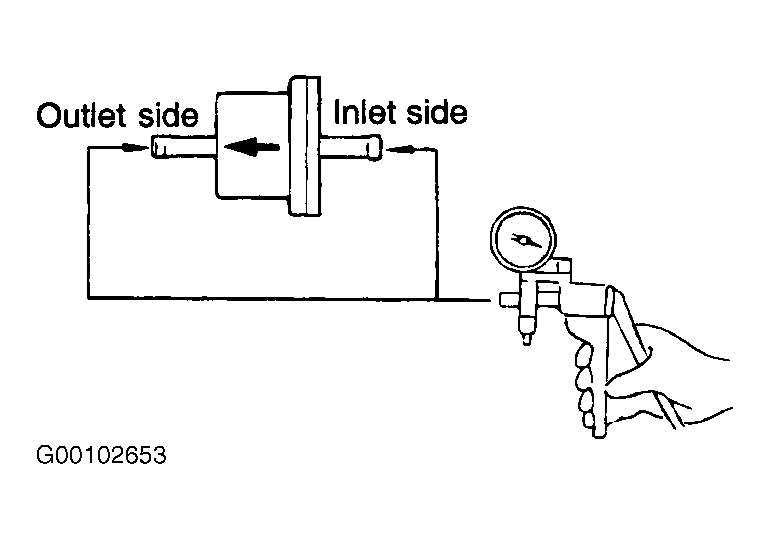 - Connect vacuum pump to inlet side of Two-Way valve. See Fig 2. Apply vacuum, negative pressure is generated and vacuum should be held. If vacuum is not held, replace Two-Way valve. If vacuum is held, go to next step.