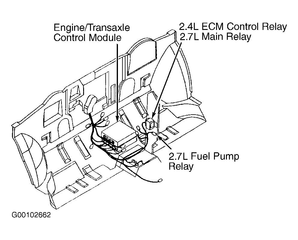 - Remove ECM control relay located in vehicle right side of dash. See Fig 1. Check for continuity between relay terminals No. 1 and No. 3. See Fig 2. If continuity does not exist, go to next step. If continuity exists, replace relay.