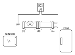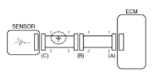- With each connector still connected, measure the voltage between the chassis ground and terminal 1 of each connectors (A), (B) and (C) as shown in Fig 4.