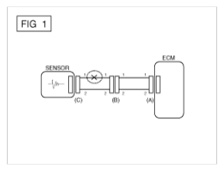In this case the measured resistance between connector (C) and (B1) is higher than 1MΩ and the open circuit is between terminal 1 of connector (C) and terminal 1 of connector (B1).