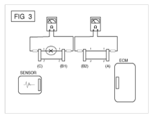 - Disconnect connector (B), and measure for resistance between connector (C) and (B1) and between (B2) and (A) as shown in [Fig 3].