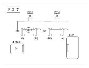 - Disconnect connector (B), and measure the resistance between connector (A) and chassis ground, and between (B1) and chassis ground as shown in [Fig 7].