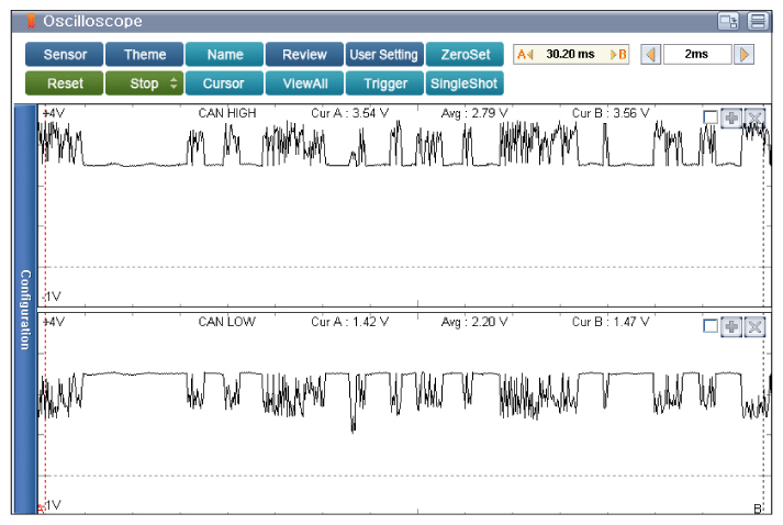 - Back probe and measure signal waveform of Pin No. 2 (Low) terminal of Passenger side Body Sense sensor ECU connector and chassis ground.