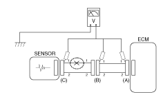 - With each connector still connected, measure the voltage between the chassis ground and terminal 1 of each connectors (A), (B) and (C) as shown in [Fig 4].