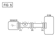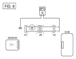 - With each connector still connected, measure the voltage between the chassis ground and terminal 1 of each connectors (A), (B) and (C) as shown in [Fig 4].