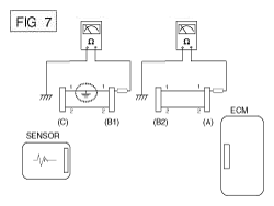 - Disconnect connector (B), and measure the resistance between connector (A) and chassis ground, and between (B1) and chassis ground as shown in [Fig 7].