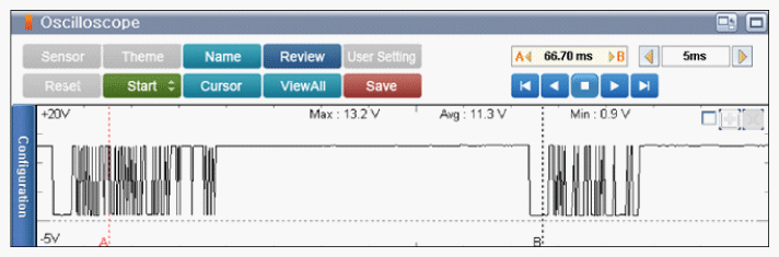 - If the voltage of measured signal waveform is the battery voltage level (about 12V),