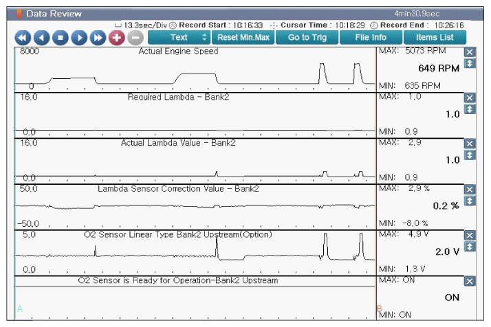 Home >> Kia >> 2017 >> Cadenza Technology >> Repair and Diagnosis (Single Page) >> Engine Performance >> System >> Engine Control System Diagnosis (2 Of 6) >> DTC P0153-00: O2 Sensor Circuit Slow Response (Bank 2/Sensor 1) >> DTC Inspection >> Monitor KDS/GDS Data
