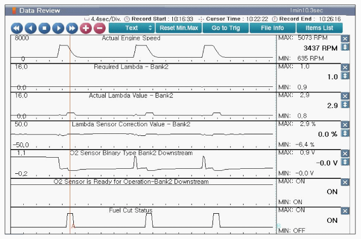 Fig 1: Screen Display - Engine Idle After Warm Up & Approx. 2000RPM & Approx. 3000RPM