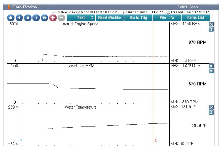 Home >> Kia >> 2017 >> Cadenza Technology >> Repair and Diagnosis (Single Page) >> Engine Performance >> System >> Engine Control System Diagnosis (4 Of 6) >> DTC P050A-00: Cold Start Idle Air Control System Performance >> DTC Inspection >> Monitor KDS/GDS Data