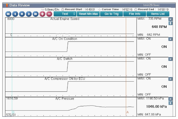 - Does the A/C Pressure Sensor operate properly? (Check variation)