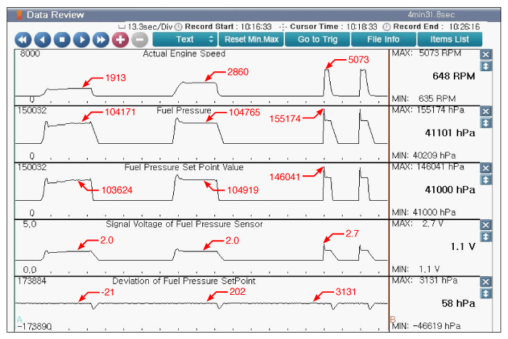 Fig 1: Scantool Display - Engine Idle After Warm Up (Approx 2000RPM, 3000RPM And 5000RPM)