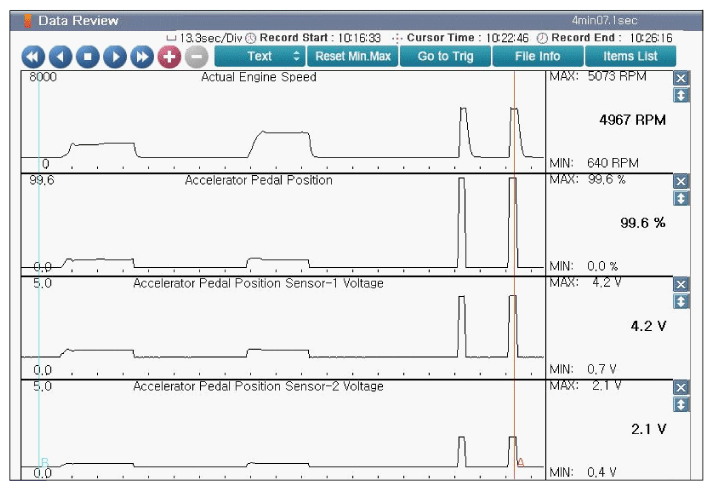 Home >> Kia >> 2017 >> Cadenza Technology >> Repair and Diagnosis (Single Page) >> Engine Performance >> System >> Engine Control System Diagnosis (5 Of 6) >> DTC P2123-00: Accelerator Position Sensor 1 Signal Circuit High Input >> DTC Inspection >> Monitor KDS/GDS Data