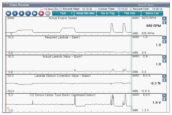 Fig 1: Scantool Display - Engine Idle After Warm Up (Approx 2000RPM, 3000RPM And 5000RPM)