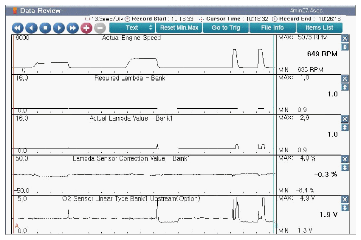 Home >> Kia >> 2017 >> Cadenza Technology >> Repair and Diagnosis (Single Page) >> Engine Performance >> System >> Engine Control System Diagnosis (6 Of 6) >> DTC P2198-00: O2 Sensor Signal Stuck Rich (Bank 2 Sensor 1) >> DTC Inspection >> Monitor KDS/GDS Data