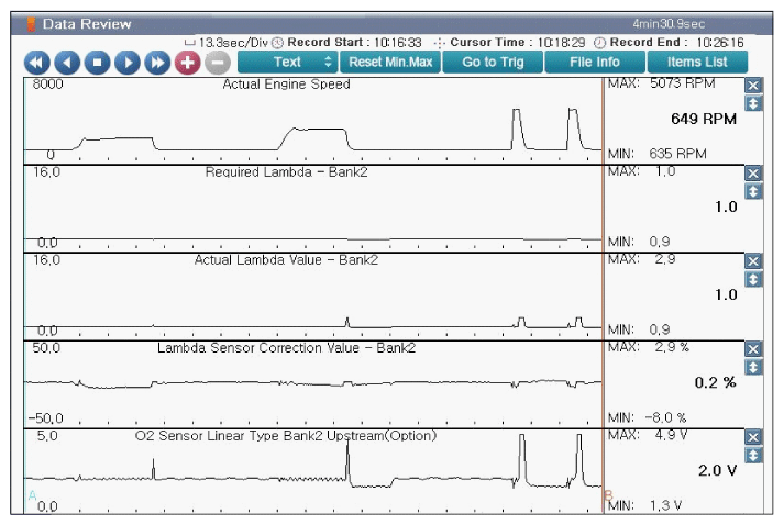 Fig 1: Scantool Display - Engine Idle After Warm Up (Approx 2000RPM, 3000RPM And 5000RPM)