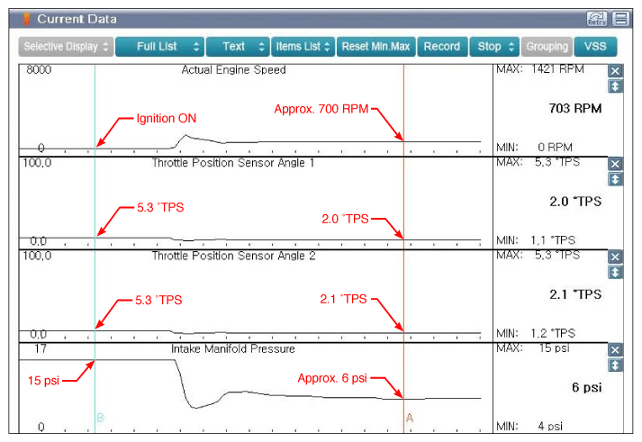 - Monitor following parameters in "Current Data